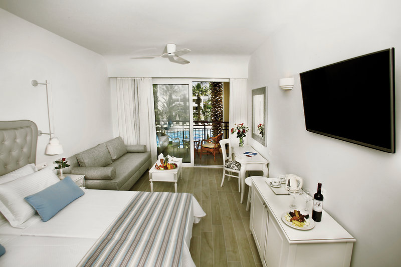 - 21-25 qm, Doppel, Poolblick, Sitzecke, Einzelbett, Sofabett, 1 Bad, Dusche oder Badewanne, WC, Fliesen, Safe (kostenpflichtig), 1 TV (Sat-TV, Flachbildschirm), Kühlschrank, Balkon oder Terrasse, Bettwäschewechsel (3 x wöchentlich), Handtuchwechsel (3 x wöchentlich)