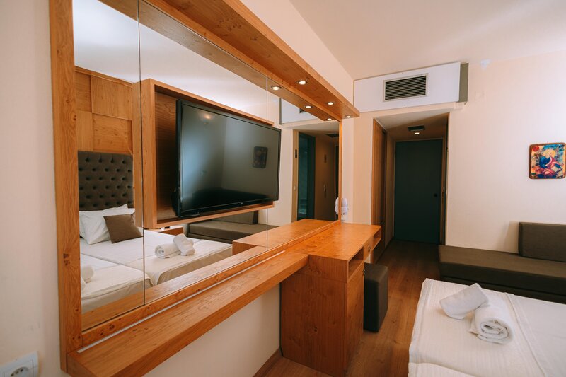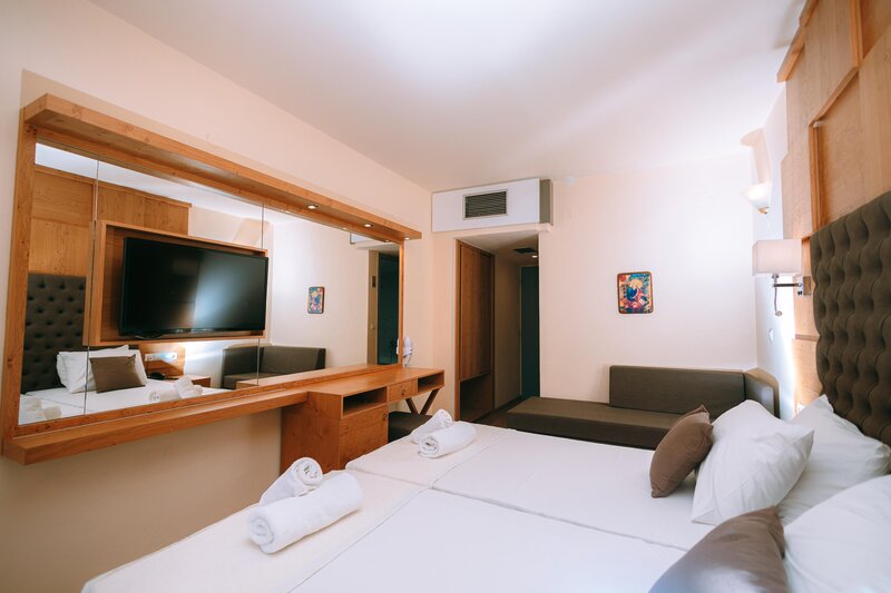 In den Zimmern gibt es eine Klimaanlage. Ein Balkon mit seitlichem Meerblick in den meisten Unterkünften lädt zum Verweilen ein. Die Zimmer verfügen über ein Sofabett. Kinder- und Zustellbetten werden gebührenfrei zur Verfügung gestellt. Ihre Wertsachen können die Gäste gegen Gebühr in einem Safe deponieren. Ein Minikühlschrank zählt ebenfalls zur Standardeinrichtung. Darüber hinaus sind ein Telefon mit Direktwahl, ein Flachbildschirmfernseher mit Satellitenempfang und WiFi (ohne Gebühr) vorhanden. Zu den Vorzügen der Zimmer gehören Hausschuhe. In den Badezimmern ist ein Haartrockner vorhanden. Für besonderen Komfort in den Badezimmern sorgen Kosmetikartikel. Die Unterbringung bietet Nichtraucherzimmer.