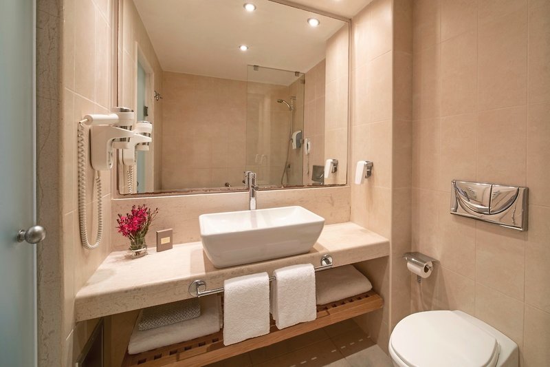 - 26-30 m², Junior Suite, Premium, výhľad na more, kombinovaná obývacia/spacia časť, 1 kúpeľňa, sprchovací kút, WC, župan, papuče, sušič vlasov, individuálne ovládaná klimatizácia, trezor, 1 TV (satelitná TV), káva/čaj, chladnička, zariadený balkón, košík s ovocím, víno a voda pri príchode