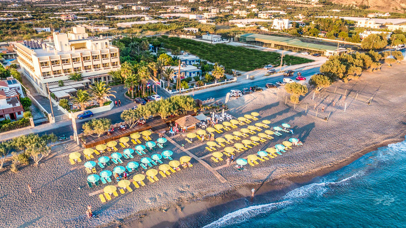 Lage & Umgebung Das komfortable Hotel befindet sich an der wunderschönen Mittelmeerküste mit Zugang zum hoteleigenen Strand. Von hier aus, Kretas schmalster Stelle, lässt sich hervorragend zu Inselerkundungen starten. Etwa 1,5 km sind es bis zur Hafenstadt Ierapetra mit ihrem venezianischen Kastell.