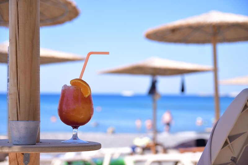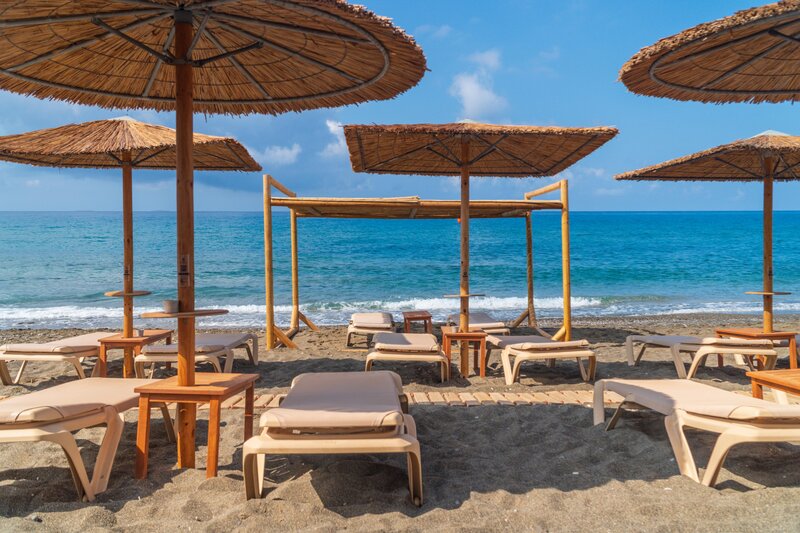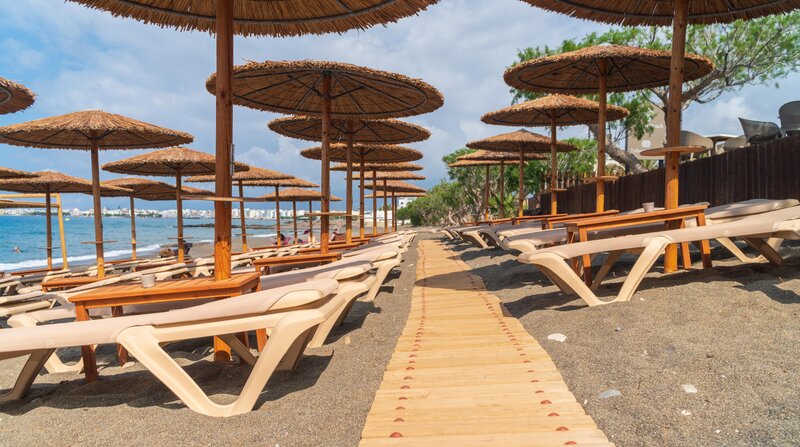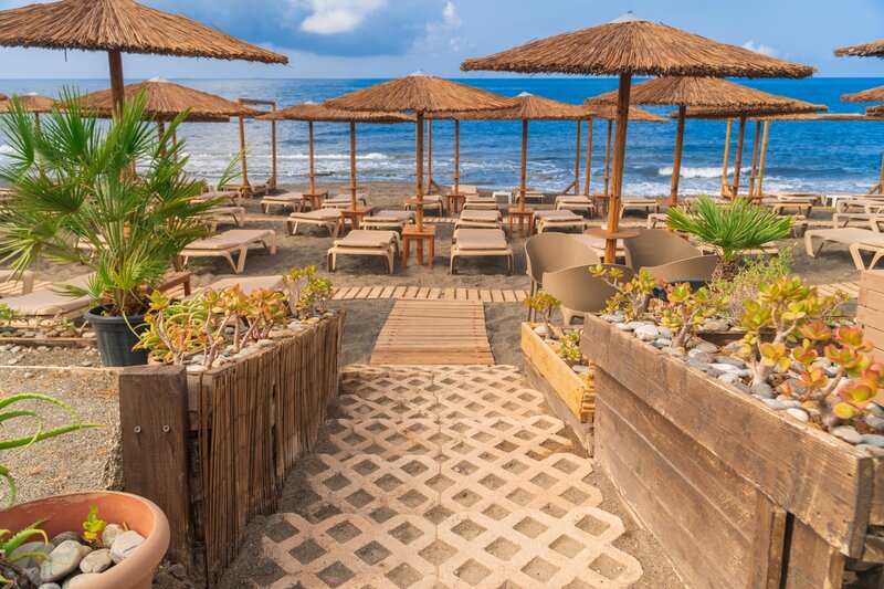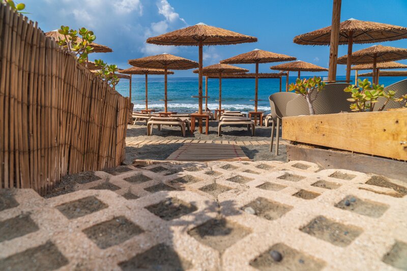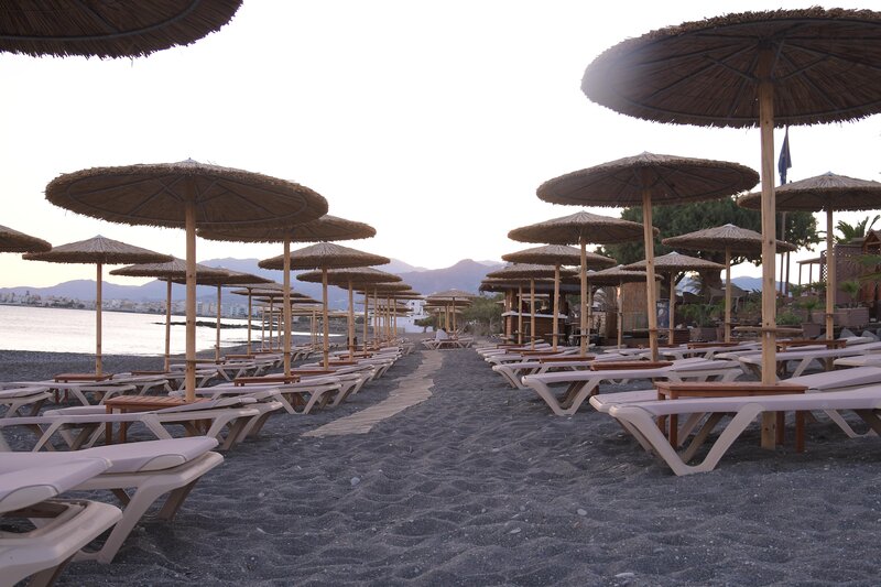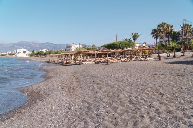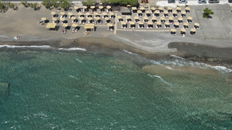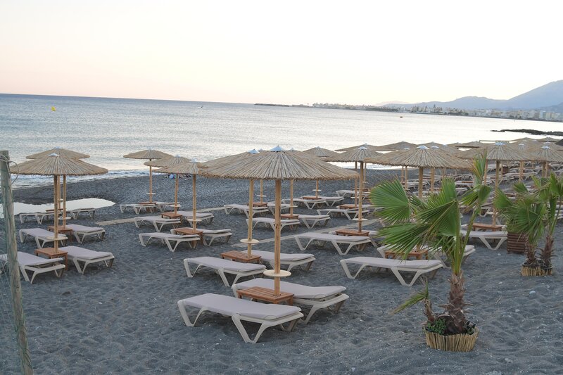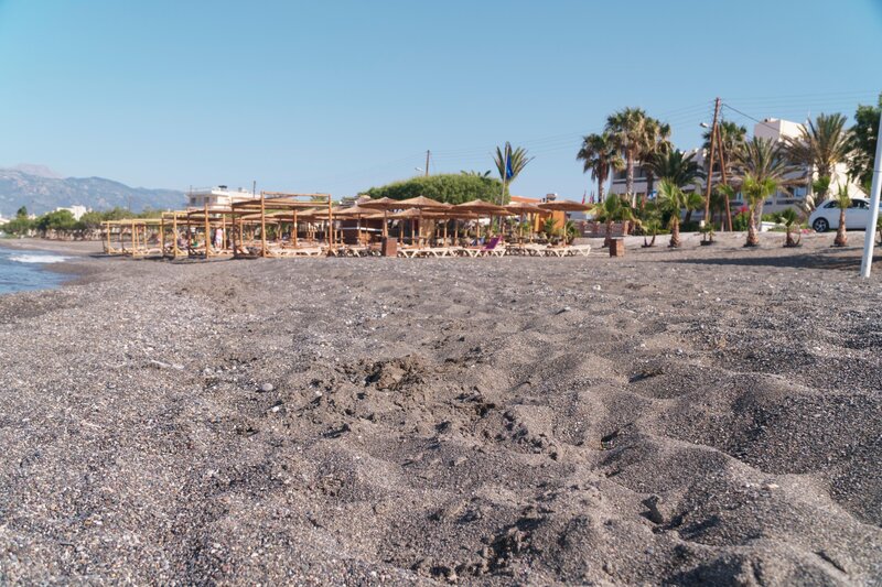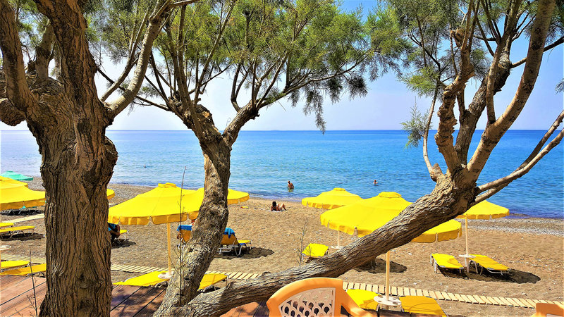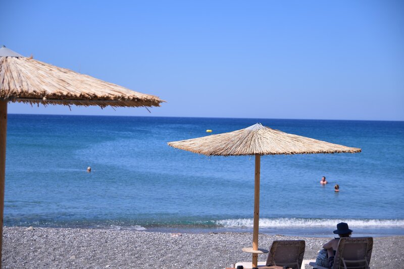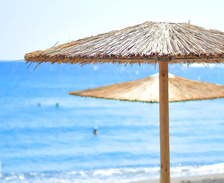 - Strand: Sand, Kies, naturbelassen, Treppen zum Strand, Badeschuhe empfehlenswert, öffentlich mit eigenem Hotelabschnitt, Liegen: ohne Gebühr, Sonnenschirme: ohne Gebühr