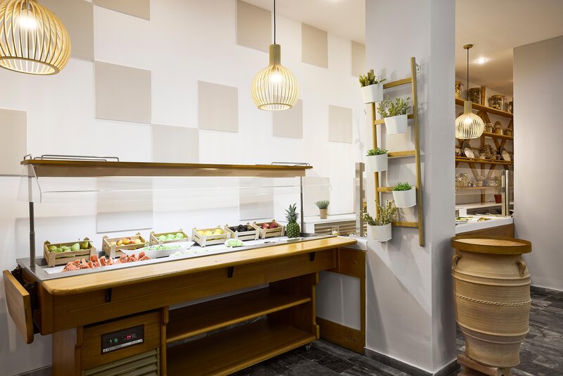 - Restaurant „Epicurus Table“: Küche: griechisch, international, landestypisch, glutenfreie Gerichte: Anfrage notwendig, vegetarische Gerichte, vegane Gerichte: Anfrage notwendig, Buffet, Showcooking