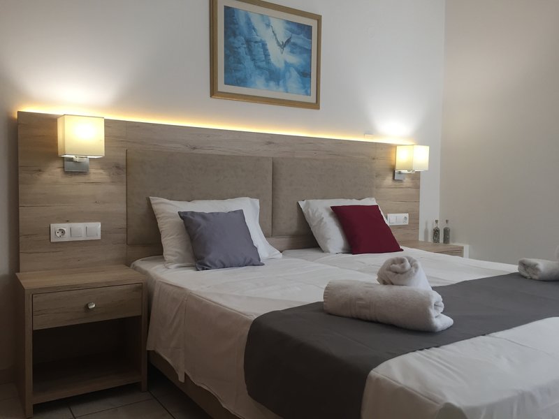 miesto:Hotel sa nachádza asi 100 m od piesočnatej pláže, obľúbenej najmä medzi novomanželmi na svadobnej ceste. Najbližšie mesto je Hersonissos. Obchody sú cca 50 m od hotela. K najbližším barom a reštauráciám sa dostanete po cca 50 m. Okrem požičovne áut je tu aj požičovňa motoriek, stanovište taxíkov (cca 100 m) a autobusová zastávka (cca 50 m). Pre urgentnú zdravotnú starostlivosť je nemocnica vzdialená približne 36 km. Letisko (HE) je vzdialené približne 27 km. Ďalšie letisko (CHQ) je vzdialené približne 170 km.