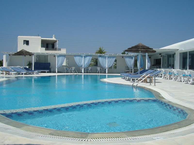 Lage & Umgebung Das Apartmenthotel befindet sich in der ruhigen und malerischen Gegend von Glastros, nur ca. 2 km von Mykonos-Stadt entfernt. Es liegt entfernt der Hauptstraße, die von der Hauptstadt zu Platis Gialos führt. Glastros bietet einen herrlichen Blick über das Ägäische Meer und auf die Sonnenuntergänge.