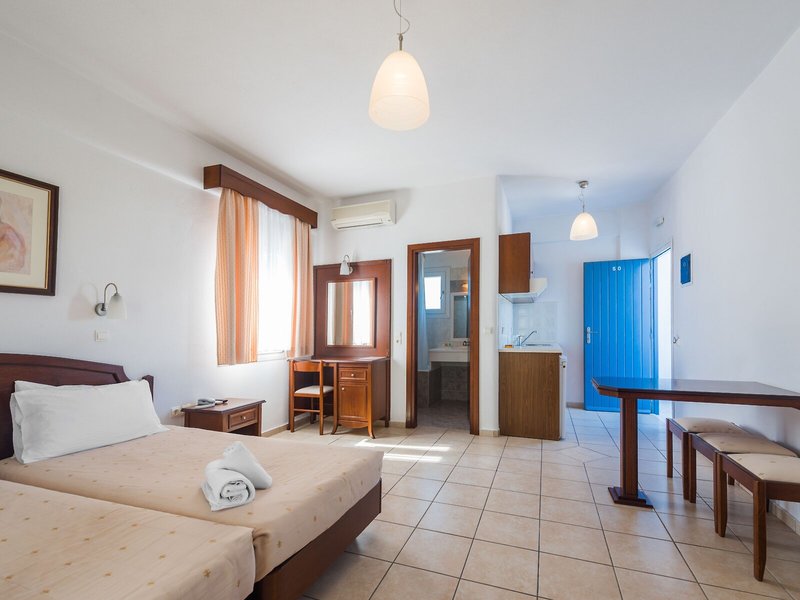 Poloha a okolie Tento apartmánový hotel sa nachádza v pokojnej a malebnej oblasti Glastros, len 2 km od mesta Mykonos. Je mimo hlavnej cesty, ktorá vedie do Platis Gialos z hlavného mesta. Glastros ponúka nádherný výhľad na Egejské more a na západy slnka.