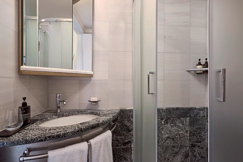 - 26-30 m2, dvojlôžková, výhľad na more, 1 kúpeľňa, vaňa, WC, župan, papuče, fén, kozmetické zrkadlo, dlažba, klimatizácia, individuálne nastaviteľné, minibar za poplatok, trezor, 1 TV (satelitná TV), WiFi , kávovar na espresso, káva/čaj, balkón alebo terasa