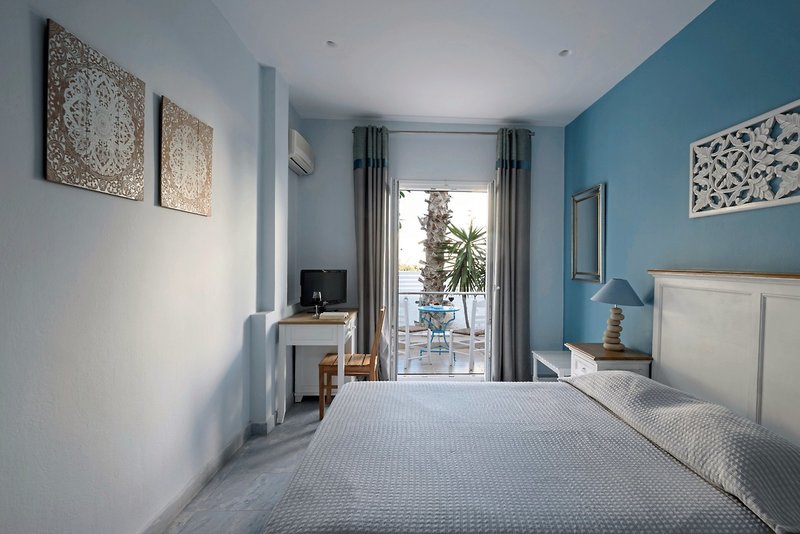 Das kleine Strandhotel an der berühmten schwarzen Küste von Kamari überzeugt mit Charme und Gemütlichkeit. Jedes der nur 28 Zimmer verfügt über eine private Veranda – für ruhige, entspannte Momente.
