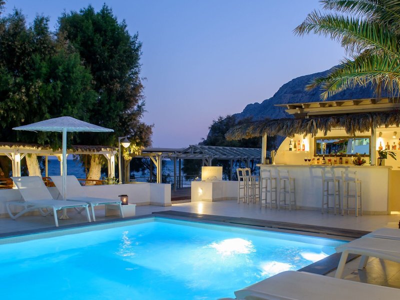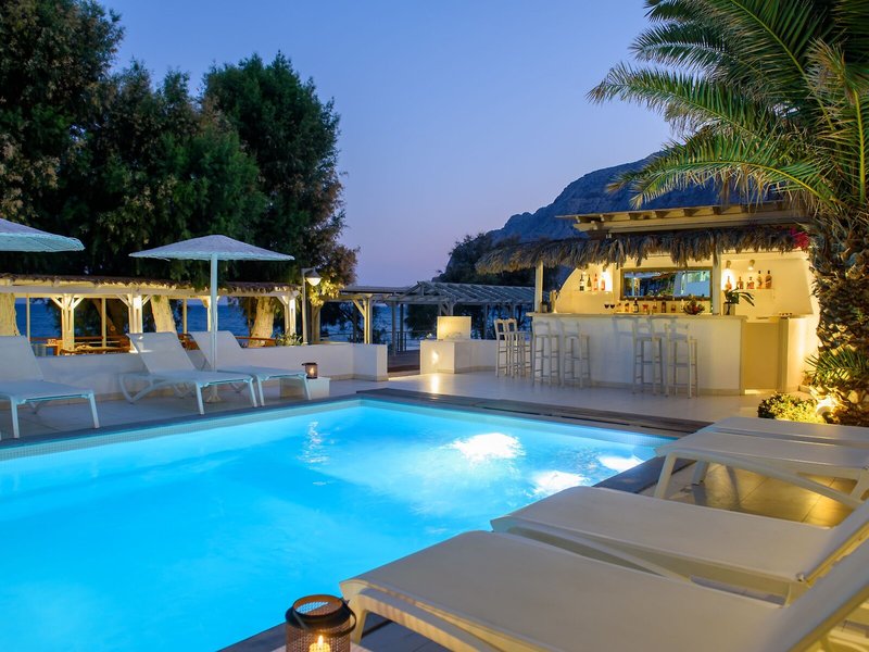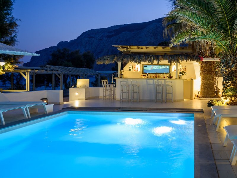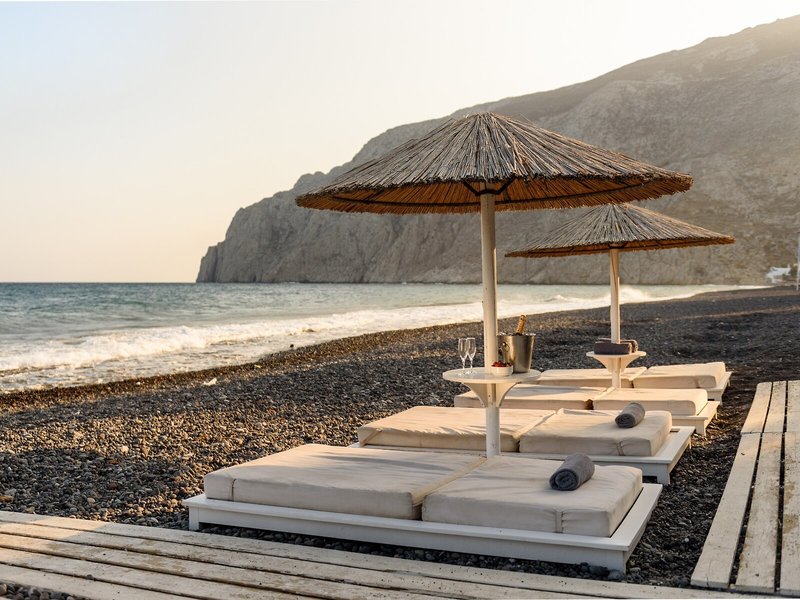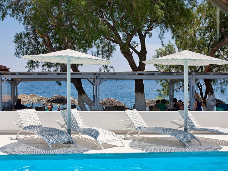 Poloha a okolie Hotel sa nachádza na čiernej pláži Kamari, len 5 km od letiska a Mesaria, 12 km od prístavu a 7 km od Fira, hlavného mesta Santorini.