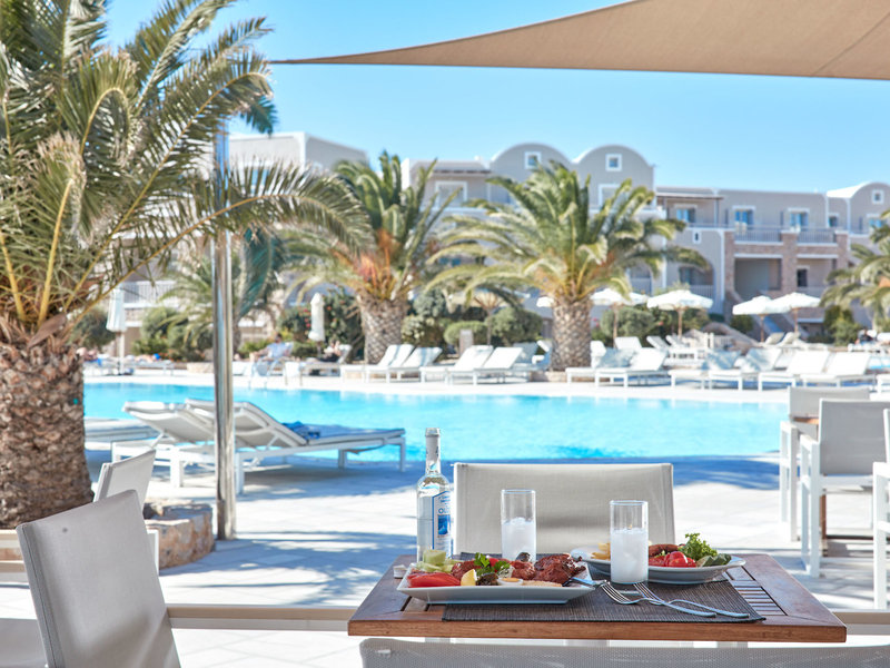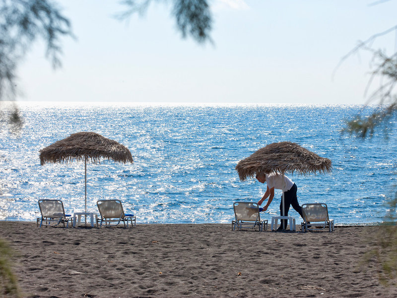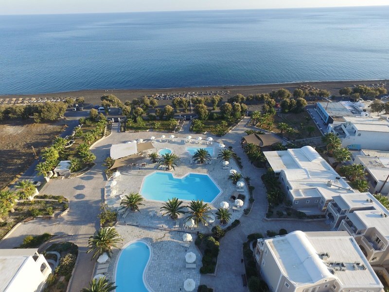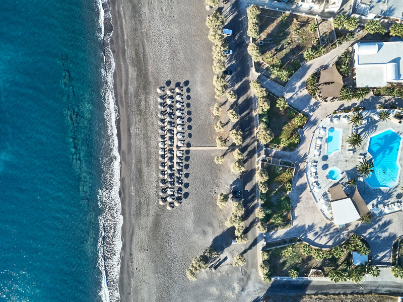 Das erwartet Sie: Moderne Hotelanlage in ansprechender Architektur, mit mediterranem Ambiente und guter Lage. Nur durch die Uferpromenade vom herrlichen, kilometerlangen, dunklen Strand Perissa-Perivolos getrennt. Schöner Poolbereich. Ideal für einen entspannten Badeurlaub.