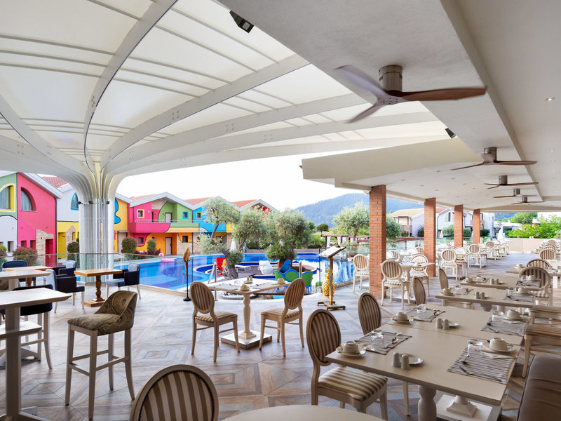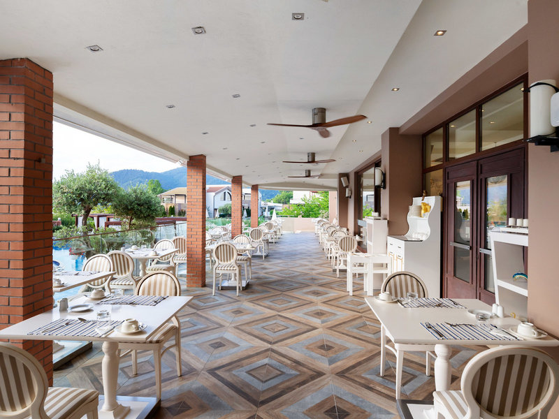 - Hauptrestaurant „Golden Frog“: Küche: griechisch, landestypisch, Fisch/Meeresfrüchte, Grillgerichte, Buffet, à la carte, angemessene Kleidung erwünscht