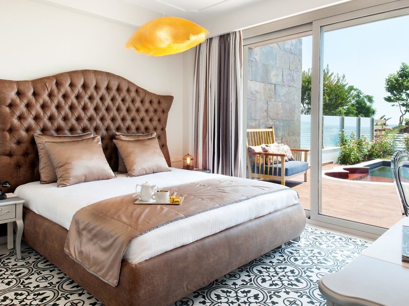- Maisonette Suite Meerblick private pool (SUM1), Suite, Meerblick, Gesamtanzahl der Räume in diesem Zimmertyp: 2, Aufteilung wie folgt: Wohnzimmer, Maisonette, 1 Schlafzimmer, Klimaanlage: ohne Gebühr, zentral gesteuert, Fußboden: Fliesenboden, Safe: ohne Gebühr, Kochnische, Esstisch, Minibar: gegen Gebühr, Telefon, Internet: WLAN/WiFi: ohne Gebühr, Fernseher: Flatscreen, Sat-TV, Roomservice: gegen Gebühr, Reinigungsservice: ohne Gebühr, WC, Föhn, Balkon oder Terrasse: mit Private Pool, Terrasse: mit Private Pool