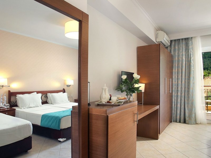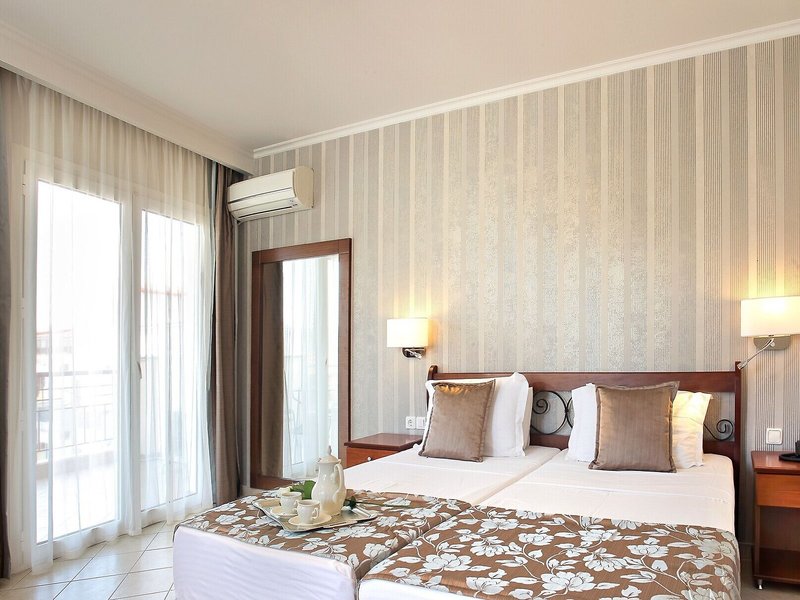 Vaše ubytovanie: Klimatizácia a kúrenie zabezpečujú príjemnú vnútornú klímu. Väčšina izieb má balkón alebo súkromnú terasu, kde si hostia môžu oddýchnuť a vychutnať si výhľad na more. Izby sú vybavené manželskou posteľou a rozkladacou pohovkou. Prístelky je možné požiadať. Trezor poskytuje najlepšiu ochranu vecí hostí. K dispozícii je aj chladnička a príslušenstvo na prípravu čaju/kávy. Pre pohodlie hostí je k dispozícii žehliaca súprava. K dispozícii je aj telefón, satelitná TV a bezplatné Wi-Fi pripojenie na internet. Kúpeľne sú vybavené sprchovacím kútom, sušičom vlasov a telefónom. Pre väčšie pohodlie sú k dispozícii toaletné potreby. K dispozícii sú aj bezbariérové izby s bezbariérovou kúpeľňou. Hotel ponúka rodinné a nefajčiarske izby.