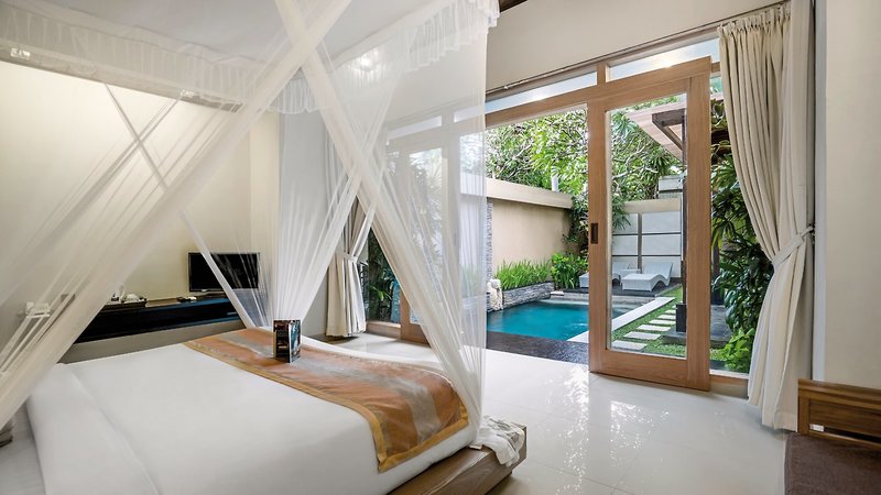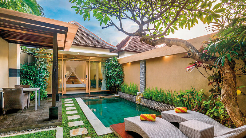 Odtiaľto môžete preskúmať atrakcie Seminyaku, ako napríklad chrám Petitenget. Tento pôvabný rezort má ideálnu polohu a hostia milujú vynikajúcu reštauráciu.Vaše výhody: Záhradná oáza ako v džungli s tromi bazénmi
