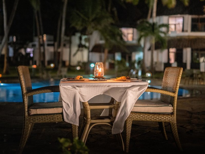 Poloha a okolie Tento s láskou navrhnutý plážový rezort na severnom pobreží Mombasy, postavený v tradičnej africkej architektúre, sa nachádza v palmovej záhrade priamo na dlhej, mierne sa zvažujúcej pláži Bamburi. Rezort je oázou pokoja a relaxu a zároveň ideálnou základňou pre milovníkov vodných športov a potápačov. Rušné prístavné mesto Mombasa je vzdialené približne 12 km. Čas transferu: približne 40 minút.