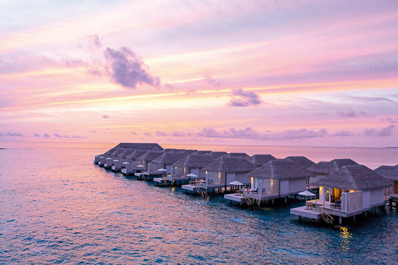 Sunset Water Villa (16) ca. 105 qm inkl. Außenbereich: Direkt über der Lagune auf Stelzen gebaut, mit Sonnendeck und direktem Zugang zum Ozean.
