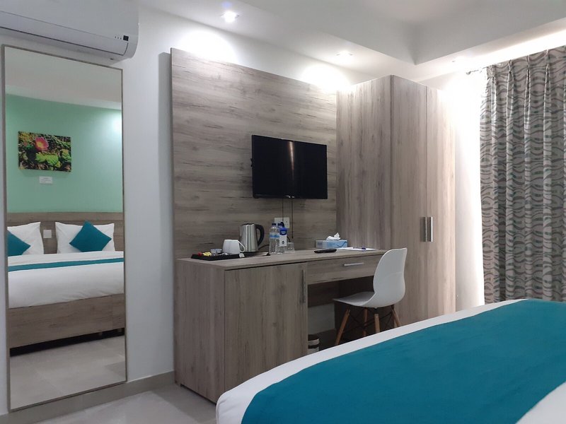 So wohnen Sie: Für angenehmes Raumklima in den Zimmern sorgen eine Klimaanlage und eine Heizung. Die Zimmer verfügen über ein Doppelbett oder ein Queensize-Bett. Zustellbetten können angefordert werden. Es gibt eine Minibar. Eine Tee-/Kaffeemaschine zählt ebenfalls zur Standardeinrichtung. Besten Urlaubskomfort bieten ein Telefon, Sat-TV und WiFi. Im Badezimmer – ausgestattet mit einer Dusche – ist ein Haartrockner vorhanden. Außerdem sind barrierefreie Badezimmer buchbar. Das Haus bietet Familien- und Nichtraucherzimmer.