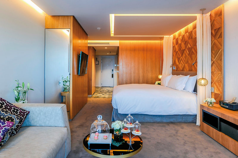 - 61-70 qm, Suite, Stadtblick, separater Wohnraum, kombinierter Wohn-/Schlafraum, Sitzecke, Schreibtisch, Dusche oder Badewanne, WC, Bademantel, Haartrockner, Klimaanlage, Heizung, Minibar kostenpflichtig, Safe, TV (Sat-TV, deutschsprachiges Programm), WLAN, Kaffee/Tee, Balkon oder Terrasse