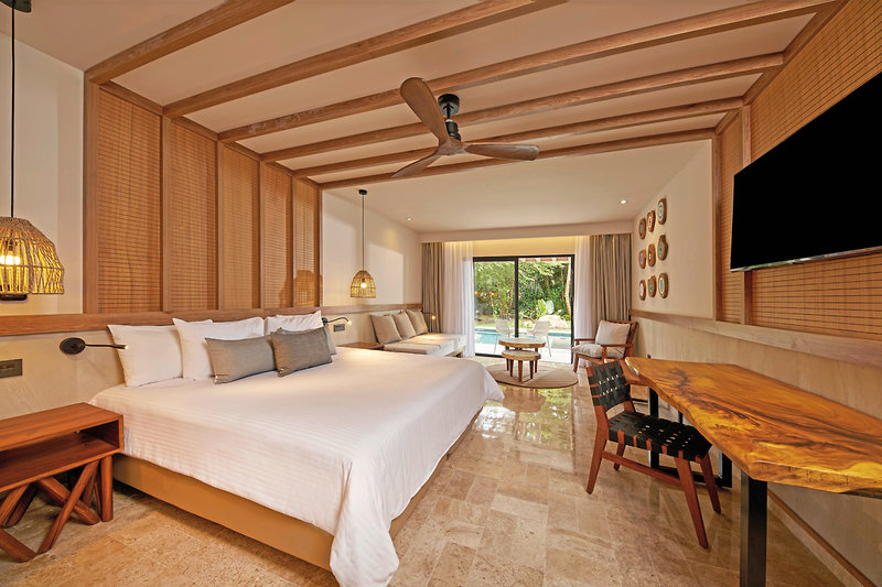 - 46-50 qm, Juniorsuite, Deluxe, kombinierter Wohn-/Schlafraum, Doppelbett (Kingsize), 1 Bad, Whirlwanne, WC, Bademantel, Badeslipper, Haartrockner, Kosmetikspiegel, Klimaanlage, Ventilator, Minibar, Safe, Bügelbrett, Bügeleisen, 1 TV (Flachbildschirm), Kaffee/Tee, Balkon oder Terrasse (möbliert), direkter Poolzugang, Gemeinschaftspool, 24-h-Zimmerservice