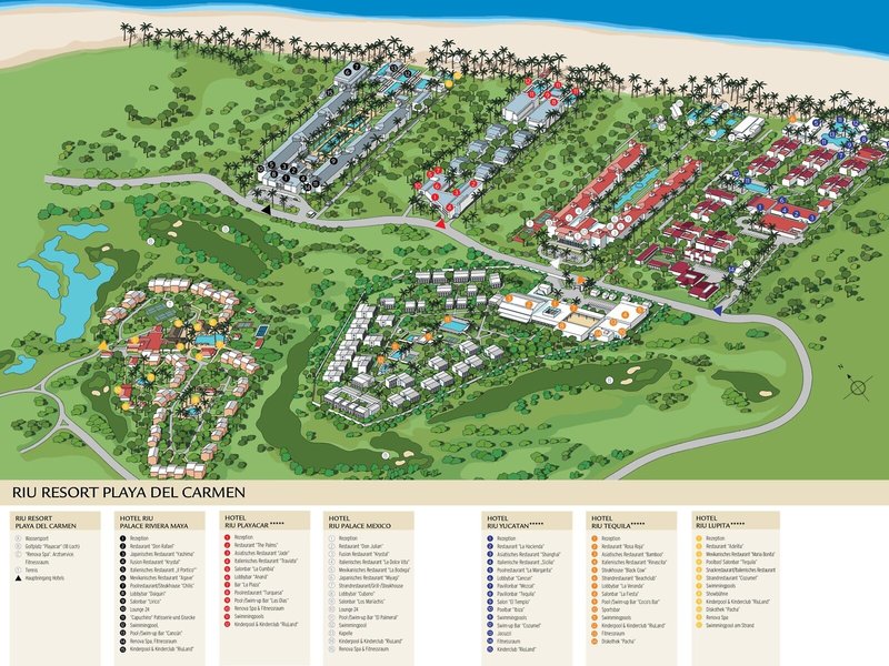 - Mittagessen und Snacks: freie Wahl zwischen den Angeboten der Hotels Riu Playacar, Riu Yucatan und Riu Tequila. Die Getränke in allen Bars der Hotels Riu Playacar, Riu Yucatan und Riu Tequila