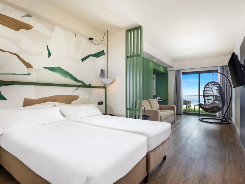 - Dvojlôžková izba Superior s výhľadom na more (DZM1), dvojlôžková izba, výhľad na more, cca 43 m², naposledy čiastočne zrekonštruovaná v roku 2018, celkový počet izieb v tomto type izby: 1, rozloženie: kombinovaná obývacia izba/spálňa, 2 samostatné postele (90x200cm), 1 rozkladacia pohovka, detská postieľka: zadarmo, nie je potrebné vyžiadať si ju a rezervovať ju, klimatizácia: zadarmo, individuálne ovládaná, chladenie, podlaha: dlažba, trezor: za poplatok, pohovka, chladnička: zadarmo, telefón, internet: WLAN/WiFi: zadarmo, televízor: plochá obrazovka, nemecké kanály, satelitná TV, upratovacia služba, sprcha, WC, fén, balkón alebo terasa: s posedením