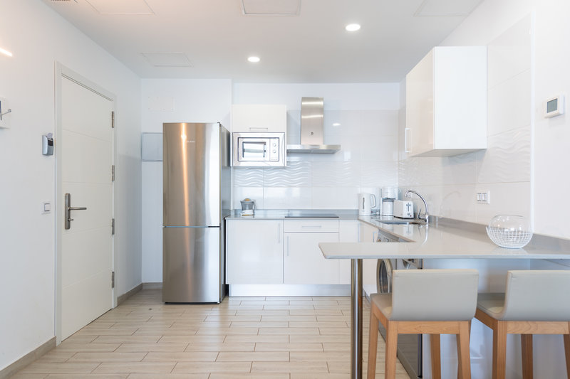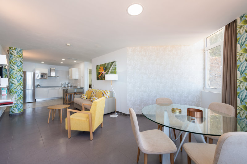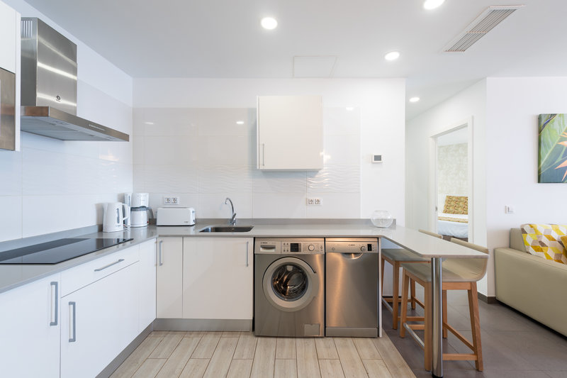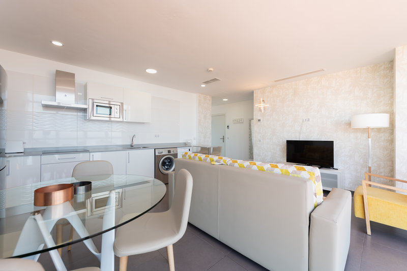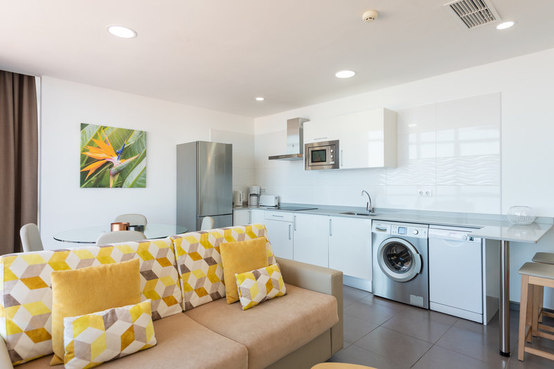 Die Zimmer sind ausgestattet mit Doppelbett, 1 Extrabett (Schlafsofa), Babybett (kostenlos), gefliestem Boden, Kitchenette, Microwelle, Wasserkocher (kostenlos), Balkon oder Terrasse, Internet (kostenlos), Safe (kostenlos) und Sat-TV mit lokalen Sendern sowie individuell regulierbarer Klimaanlage. Badezimmer mit Dusche (Größe: 60 m²). Handtücher werden 5x pro Woche gewechselt.