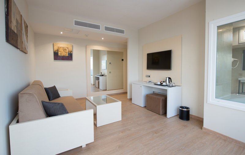 Die modern eingerichteten Zimmer mit Wohnraum sind ausgestattet mit Jacuzzi, Heizung (zentral gesteuert), Wasserkocher (kostenlos), Minibar (geg. Gebühr), Balkon, Internet (kostenlos), Safe (geg. Gebühr) und Flatscreen-Sat-TV sowie zentral gesteuerter Klimaanlage (von Januar bis Dezember). Badezimmer mit Badewanne und Dusche (Größe: 52 m²). Handtücher werden täglich gewechselt.