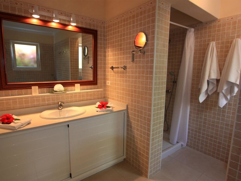 - VILLA (VIX1), Haus, Meerseite, Westseite, eingeschränkter Meerblick, Bergblick, ca. 110 - 120 m², letzte Teilrenovierung 2020, Gesamtanzahl der Räume in diesem Zimmertyp: 3, Aufteilung wie folgt: Wohnzimmer, 2 Schlafzimmer, 2 Doppelbetten (200x190cm), Babybett: ohne Gebühr, Klimaanlage: ohne Gebühr, individuell regelbar, kalt, Heizung: individuell regelbar, Fußboden: Fliesenboden, Safe: ohne Gebühr, Sitzecke, Sofa, Bügeleisen, Bügelbrett, Küche, Kühlschrank, Gas/E-Herd, Backofen, Mikrowelle, Geschirrspüler, Kaffeemaschine, Wasserkocher, Toaster, Esstisch, Telefon, Internet: WLAN/WiFi: ohne Gebühr, Fernseher: Flatscreen, im Wohnbereich, deutsches Programm, Sat-TV, Reinigungsservice: wöchentlich, separate Dusche, Badewanne, WC, Bademantel: ohne Gebühr, Föhn, Kosmetikspiegel, Terrasse: mit Liegestühlen, mit Sitzgelegenheit, mit Privat-Garten