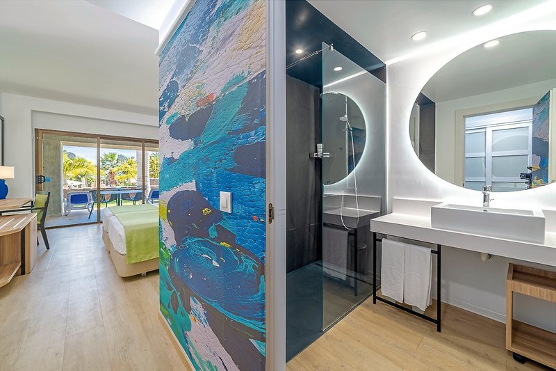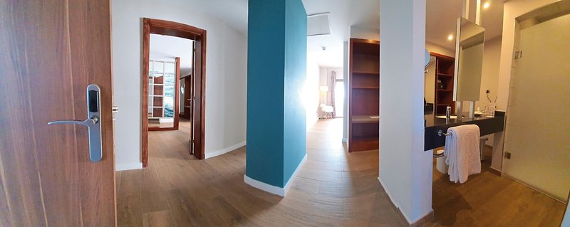 - 81-90 qm, Suite, mit Verbindungstür, Meerblick, 2 Bäder, Dusche, Bademantel, Badeslipper, Haartrockner, Fliesen, Klimaanlage, Safe (kostenpflichtig), 2 TVs (Sat-TV, Flachbildschirm), WLAN, Kühlschrank, Terrasse (möbliert), hochwertige Badartikel