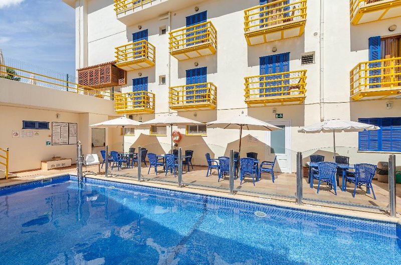 -Poloha: do centra mesta: cca 300 m od pláže: cca 800 m od letiska: cca 81 km piesočná pláž: slnečníky (za poplatok), ležadlá (za poplatok) Vybavenie: oficiálna národná kategória: 3 hviezdičky Rok výstavba: 1970 Počet bytových jednotiek: 77 Možnosti platby : MasterCard, Visa recepcia/recepcia (check-in: od 14:00 hod.) Lobby, výťah, klimatizácia WiFi, v celom komplexe 1 bufetová reštaurácia: miestna kuchyňa Bar pri bazéne Práčovňa (za poplatok ) Slnečná terasa 1 bazén: slnečníky, ležadlá Dvojlôžková izba Economy (DE): 1 kúpeľňa , sprcha alebo vaňa, sušič vlasov, klimatizácia, trezor (za poplatok), 1 TV (satelitná TV), WiFi, chladnička (za poplatok) Jednolôžková izba Economy (EE) : jednolôžko, 1 kúpeľňa, sprcha alebo vaňa, sušič vlasov, klimatizácia, trezor (za poplatok), 1 TV (satelitná TV), WiFi, chladnička (za poplatok), balkón Dvojlôžková izba (DBB): 1 kúpeľňa, sprcha alebo vaňa, sušič vlasov, klimatizácia, trezor (za poplatok), 1 TV (satelitná TV), WiFi, chladnička (za poplatok), balkón Jednolôžková izba (EBB): jednolôžko, 1 kúpeľňa, sprcha alebo vaňa, sušič vlasov, klimatizácia, trezor (za poplatok ), 1 TV (satelitná TV), WiFi, chladnička (za poplatok), balkónTrojlôžková izba (TBB): 1 kúpeľňa, sprcha alebo vaňa, sušič vlasov, klimatizácia, trezor (za poplatok), 1 TV (satelitná TV), WiFi, chladnička (za poplatok), balkón Rodinná izba (F): 1 kúpeľňa, sprcha alebo vaňa, sušič vlasov, klimatizácia, trezor (za poplatok), 1 TV (sat TV), WiFi, chladnička (za poplatok), balkón Stravovanie: Raňajky: bufet Deti: Detské ihrisko (vonku)Wellness za poplatok (čiastočne poskytovateľ tretej strany): Spa Whirlpool Sauna: Sauna, Hamam Masáže Kozmetické procedúryV cene športu a zábavy (čiastočne poskytovateľ tretej strany): Minigolf Stolný tenisŠport a zábava za poplatok ( čiastočne externý poskytovateľ): Požičovňa bicyklov: na miesteTipy a tipy: Turistická daň splatná na mieste Deti alebo osoby mladšie ako 18 rokov môžu platiť len v sprievode dospelej osoby: Pobytová taxa Od 1. júla 2016 dovolenkári na Baleárskych ostrovoch Ostrovy museli zaplatiť daň za prenocovanie pre trvalo udržateľný cestovný ruch, ktorá sa pohybuje od 1 EUR (približne 1,10 CHF) do 4 EUR (približne 4,40 CHF) plus 10 % DPH na osobu/noc a je potrebné ju zaplatiť hosťom pri príchode alebo odchod do ich ubytovania. Presná suma závisí od kategórie krajiny príslušného ubytovania. Mimo sezóny (1. novembra – 30. apríla) je suma znížená o 75 %. Od dane sú oslobodení deti a mládež do 16 rokov. Pre dlhodobých dovolenkárov sa suma od 9. dňa pobytu znižuje na polovicu.-Lage: