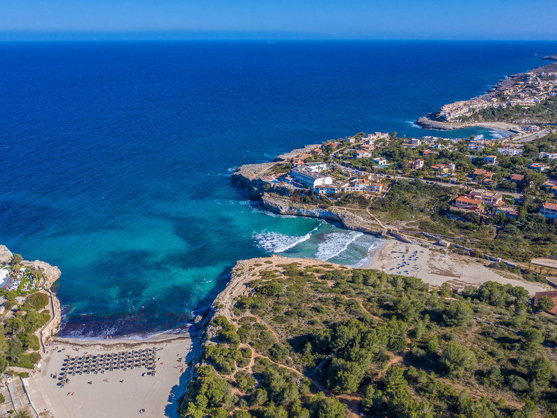 Poloha a okolie Tento hotel, obklopený husto zalesnenými kopcami na východnom pobreží Malorky a len asi 5 km od romantických zátok na kúpanie Cala Domingos, je dobrou alternatívou k bežným plážovým rezortom. Letisko Palma je vzdialené približne 63 km.