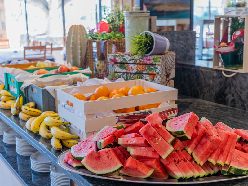 - Hauptrestaurant „Restaurante Principal“: Küche: französisch, international, italienisch, mediterran, regional, spanisch, glutenfreie Gerichte: Anfrage & Reservierung notwendig, lactosefreie Gerichte: Anfrage & Reservierung notwendig, vegetarische Gerichte: Anfrage & Reservierung notwendig, vegane Gerichte: Anfrage & Reservierung notwendig, Buffet, Anfrage & Reservierung nicht notwendig, ohne Gebühr, bei All Inclusive inklusive, Mai - Oktober, täglich 08:00 Uhr - 10:00 Uhr, 13:00 Uhr - 14:30 Uhr und 19:00 Uhr - 21:00 Uhr, klimatisierbar, Kinderhochstuhl, angemessene Kleidung erwünscht