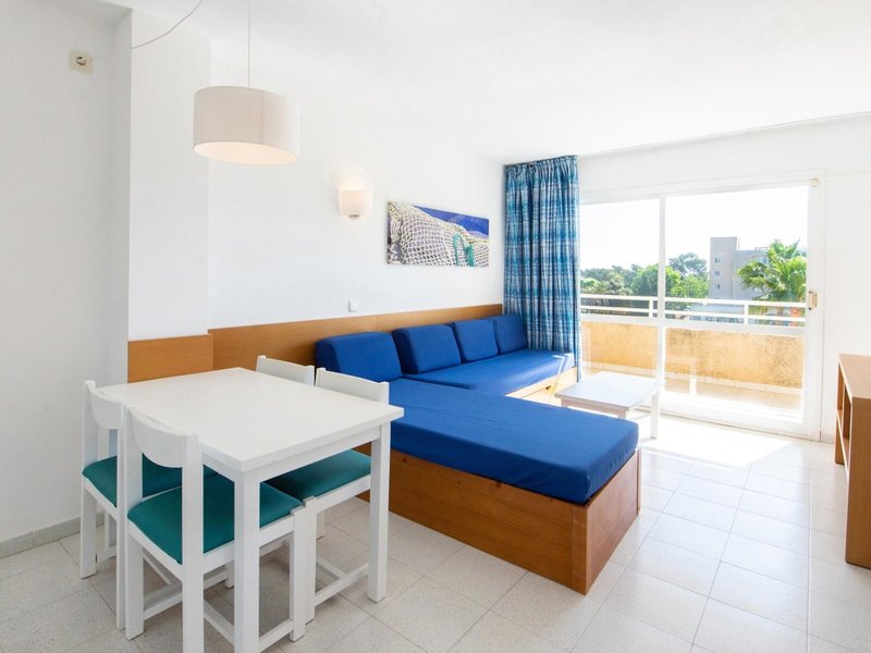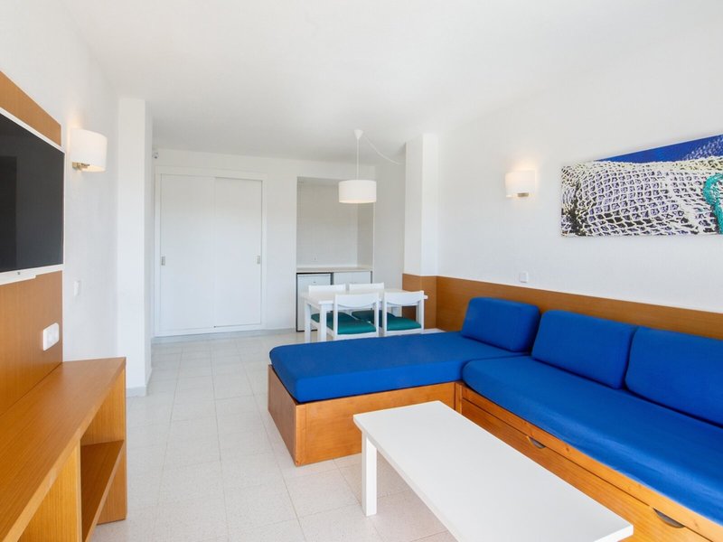- Standard Apartment (APX1), Appartement, im Nebengebäude, Innenhofblick, Landblick, ca. 35 - 40 m², letzte Komplettrenovierung 2006, letzte Teilrenovierung 2019, Gesamtanzahl der Räume in diesem Zimmertyp: 2, Aufteilung wie folgt: kombiniertes Wohn-/Schlafzimmer, 1 Schlafzimmer, 2 Einzelbetten (90x190cm), 3 Schlafsofas (80x190cm), Babybett: ohne Gebühr, Klimaanlage: zentral gesteuert, Fußboden: Fliesenboden, Safe: ca. 15 EUR, Sofa, Kühlschrank, Esstisch, Telefon, Internet: Breitband-Internet/DSL: ab 5.00 EUR, Fernseher: Flatscreen, Reinigungsservice, Badewanne oder Dusche, WC, Föhn, Balkon oder Terrasse: mit Sitzgelegenheit