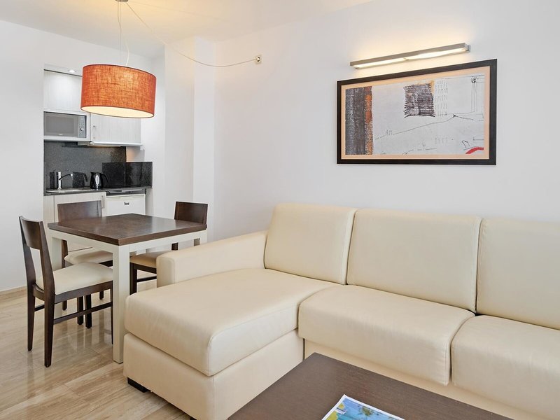 - 1-bedroom Apartment (APX1), Appartement, ca. 44 m², Gesamtanzahl der Räume in diesem Zimmertyp: 2, Aufteilung wie folgt: kombiniertes Wohn-/Schlafzimmer, 1 Schlafzimmer, 2 Einzelbetten (90x200cm), 1 Schlafsofa, Babybett: ohne Gebühr, Klimaanlage: ohne Gebühr, zentral gesteuert, kalt, Fußboden: Fliesenboden, Safe: gegen Gebühr, Schreibtisch, Kochnische, Kühlschrank: ohne Gebühr, Mikrowelle, Wasserkocher, Toaster, Esstisch, Telefon, Internet: WLAN/WiFi: ohne Gebühr, Fernseher: Flatscreen, im Wohnbereich, im Schlafzimmer, Reinigungsservice: täglich, ohne Gebühr, Dusche, WC, Föhn, Kosmetikspiegel, Balkon: mit Sitzgelegenheit