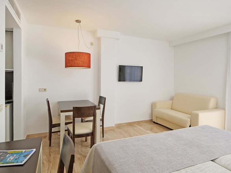 - Studio (STX1), Studio, ca. 24 m², Gesamtanzahl der Räume in diesem Zimmertyp: 1, Aufteilung wie folgt: kombiniertes Wohn-/Schlafzimmer, 2 Einzelbetten (90x200cm), 1 Schlafsofa, Babybett: ohne Gebühr, Klimaanlage: ohne Gebühr, zentral gesteuert, kalt, Fußboden: Fliesenboden, Safe: gegen Gebühr, Kochnische, Kühlschrank: ohne Gebühr, Mikrowelle, Wasserkocher, Toaster, Esstisch, Telefon, Internet: WLAN/WiFi: ohne Gebühr, Fernseher: Flatscreen, Sat-TV, Reinigungsservice: täglich, ohne Gebühr, Dusche, WC, Föhn, Kosmetikspiegel, Balkon: mit Sitzgelegenheit