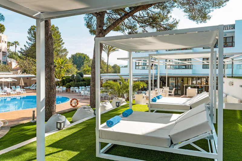 Bitte beachten Sie dass die Anlagen Ona Palmira Paguera und Ona Palmira Paradise zusammen gehören und die folgenden Einrichtungen teilen: Bars, Pools, Tennisplätze, Mini-Golf, Animationen. Die Entfernung zwischen den Anlagen beträgt ca. 200 Meter.