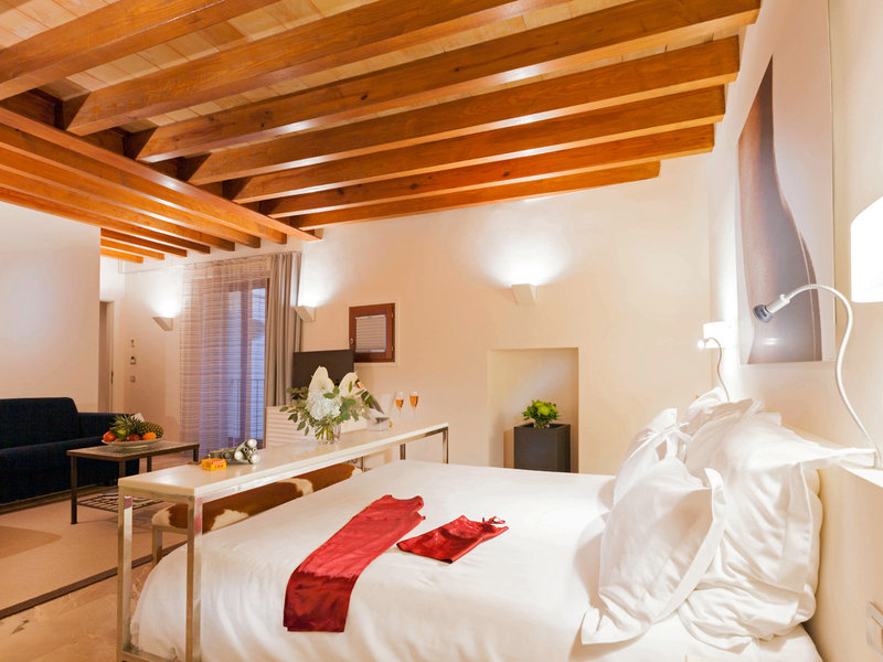 Lage & Umgebung Im modernen Stil restauriertes Stadtpalais aus dem 16. Jahrhundert. Die Kombination aus Eleganz und Behaglichkeit, sowie das rustikale Ambiente Mallorcas verbunden mit zeitgenössischem Design schaffen einen einzigartigen Rahmen zum Wohlfühlen und Entspannen. Der Höhepunkt ist der spektakuläre Ausblick von der Dachterrasse über die Dächer Palmas bis hin zum Yachthafen. Privilegierte Lage im Altstadtviertel von Palma inmitten zahlreicher Restaurants, Bars und Einkaufsmöglichkeiten. Der Hafen von Palma ist nur wenige Gehminuten vom Hotel entfernt. Transferzeit: ca. 20 Minuten.