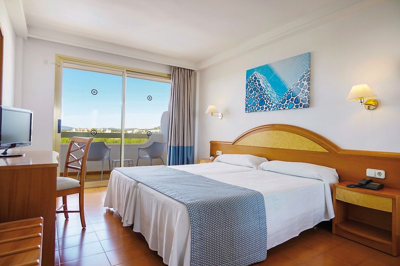 - 16-20 qm, Doppel, Standard, 1 Bad, Badewanne, Haartrockner, Klimaanlage, Safe (kostenpflichtig), 1 TV (Sat-TV), WLAN, Balkon (möbliert)