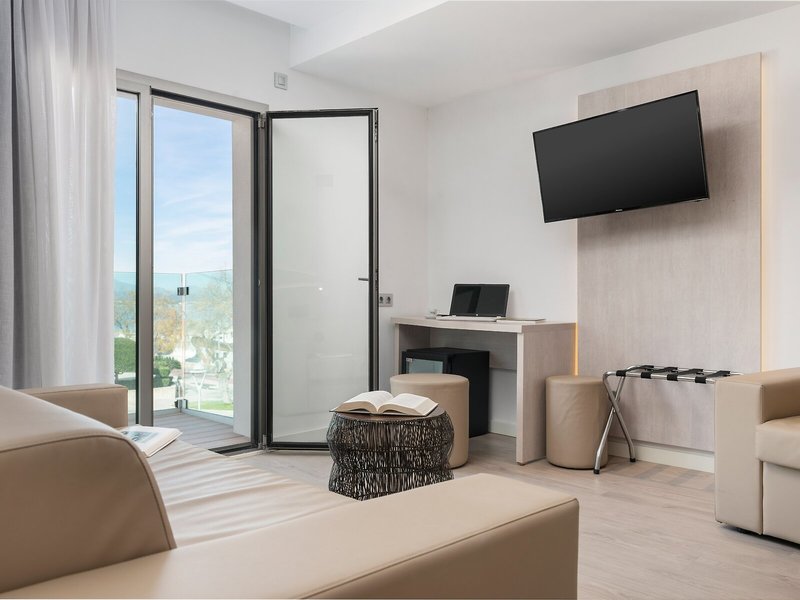 Ubytovanie: Klimatizácia a kúrenie zabezpečujú príjemnú vnútornú klímu. Hostia si môžu vychutnať výhľad na more z balkóna alebo terasy. Izby sú vybavené manželskou posteľou veľkosti king a rozkladacou pohovkou. Prístelky je možné vyžiadať. K dispozícii je aj trezor a minibar. Štandardom je aj kuchynský kút s mikrovlnnou rúrou a zariadením na prípravu čaju/kávy. Telefón, TV s platenými programami a bezplatné Wi-Fi pripojenie na internet zabezpečujú maximálne pohodlie počas dovolenky. Kúpeľňa so sprchovacím kútom a vaňou obsahuje aj sušič vlasov. Rodinné izby sú k dispozícii pre rodičov s deťmi.