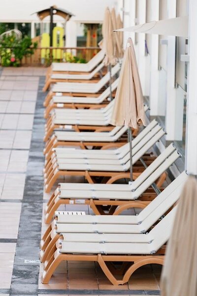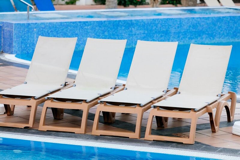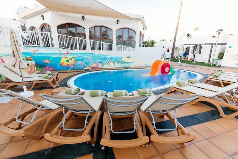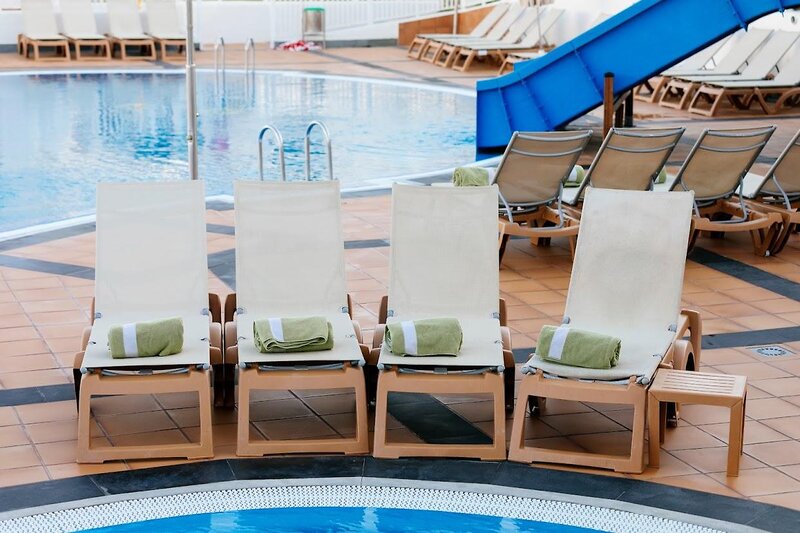 - 1 Pool: beheizbar, Wasserrutschen , Sonnenschirme, Liegen, Badetuch (kostenpflichtig)