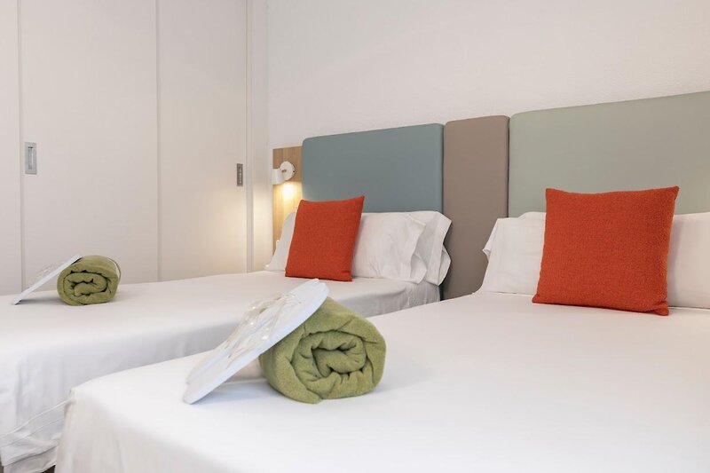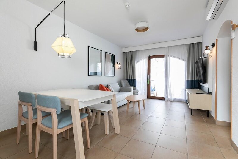 - 51-60 qm, Suite, Gartenblick, 2 separate Schlafzimmer, kombinierter Wohn-/Schlafraum, Schreibtisch, Couch, Tageslichtbad, Dusche, Haartrockner, Fliesen, Klimaanlage, Safe (kostenpflichtig), 1 TV (Sat-TV, Flachbildschirm), Kochnische, Essecke, Wasserkocher, Mikrowelle, Kaffeemaschine, Toaster, Kühlschrank, Kidsmobiliar wie z. B. Wickeltisch, Spielbereich unter dem Bett, Terrasse (möbliert)