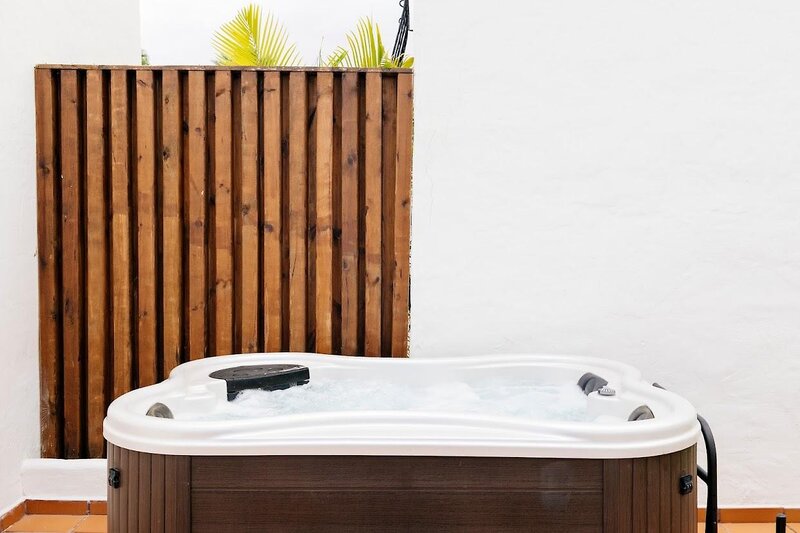 - 51-60 qm, Villa, Gartenblick, 2 separate Schlafzimmer, kombinierter Wohn-/Schlafraum, Schreibtisch, Couch, Regendusche, Bademantel, Badeslipper, Haartrockner, Klimaanlage, Minibar, Auffüllung regelmäßig, Softdrinks, Bier, Wasser, Snacks, Safe, 1 TV (Sat-TV, Smart-TV), Musikanlage, Kochnische, Essecke, Wasserkocher, Mikrowelle, Kaffeemaschine, Toaster, Kühlschrank, Terrasse (möbliert, Hängematte), Garten, Whirlpool, Kopfkissen-Menü, early Check-in/late Check-out, hochwertige Badartikel