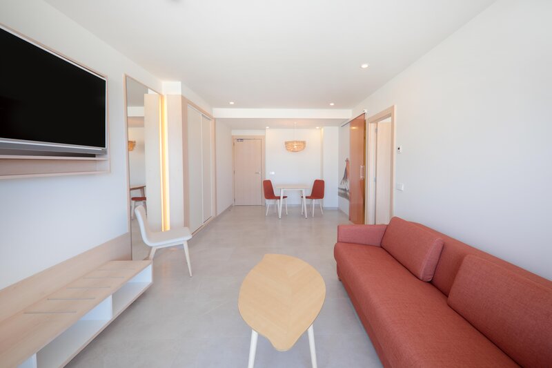- 21-25 m2, dvojlôžková, poschodie, 5., 6., výhľad na more, priestor na posedenie, 1 kúpeľňa, sprcha, 1 WC, župan, papuče, sušič vlasov, kozmetické zrkadlo, dlaždice, klimatizácia, minibar, denne dopĺňaný, trezor, 1 TV (satelitná TV, plochá obrazovka), kávovar, káva/čaj, balkón, samostatná registračná služba, 2-hodinové menu, izbová služba so zariadením, vankúš check-out, skorý check-in/neskorý check-out, vstup do klubového salónika, občerstvenie počas dňa