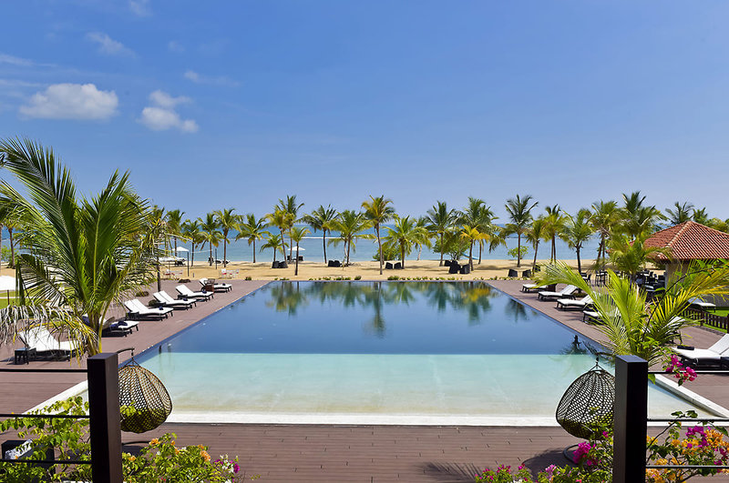 Das stilvolle 5-Sterne-Hotel Sun Siyam Pasikudah empfängt seine Gäste direkt am weitläufigen Sandstrand von Pasikudah und ist ideal für Urlauber, die Wert auf ein ruhiges Ambiente legen. Im Außenbereich lädt ein traumhafter Infinity Pool mit fantastischer Aussicht auf den Indischen Ozean zum Baden und Relaxen ein. Auch im Hotel-Spa sorgen ein Dampfbad, eine Sauna sowie Massagen und professionelle Beauty-Anwendungen für eine erholsame Auszeit. Hervorragende Küche genießen die Gäste im Restaurant. Zudem gibt es mehrere Bars, die zum Verweilen einladen. Sportlich-aktive Urlauber können im Fitnessraum trainieren, (Beach-) Volleyball spielen sowie Tauch- und Schnorchel-Ausflüge buchen. Für den Nachwuchs gibt es spannende Kinderanimationen und einen Kinderpool, der für viel Badespaß sorgt.