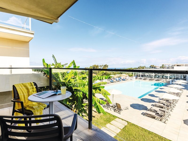- DELUXE ROOM BL/Terrace (DZX2), Doppelzimmer, Nichtraucherzimmer, Mindestalter im Zimmer: 16 Jahre, im Hauptgebäude, Neubau, Poolblick, Gartenblick, Blick auf Green Areas, ca. 16 - 20 m², letzte Komplettrenovierung 2019, Gesamtanzahl der Räume in diesem Zimmertyp: 1, Aufteilung wie folgt: 1 Schlafzimmer, 1 Doppelbett (160x190cm), Klimaanlage: individuell regelbar, kalt, warm, Fußboden: Fliesenboden, Safe: ohne Gebühr, Minibar, Telefon, Internet: WLAN/WiFi: ohne Gebühr, Fernseher: Flatscreen, deutsches Programm, Sat-TV, Reinigungsservice: täglich 08:30 Uhr - 15:00 Uhr, Dusche, WC, Föhn, Kosmetikspiegel, Balkon oder Terrasse: mit Sitzgelegenheit