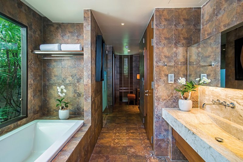 - 151-200 qm, Villa, Gartenseite, Gartenblick, Nichtraucher, optisch getrennter Wohn-/Schlafraum, Sitzecke, Schreibtisch, 1 Doppelbett, Badewanne, Außendusche, WC, Haartrockner, Klimaanlage, Minibar kostenpflichtig, Safe, TV (Smart-TV), WLAN, Wasserkocher, Kaffee/Tee, Terrasse (möbliert), Privatpool, 24-h-Zimmerservice, Anzahl Zimmer: 15, Zimmerservice (ca. 7-22:30 Uhr)