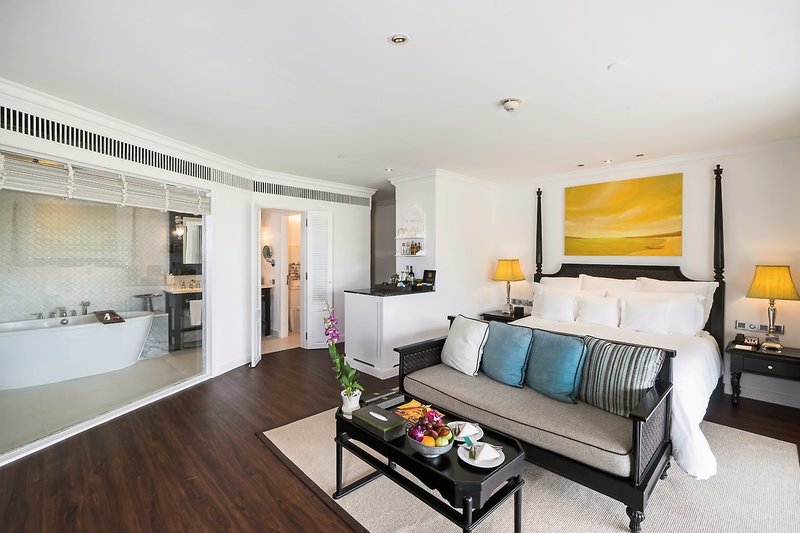 - 61-70 qm, Suite, Meerblick, kombinierter Wohn-/Schlafraum, Dusche, Badewanne, Bademantel, Badeslipper, Haartrockner, Klimaanlage, Minibar kostenpflichtig, Safe, TV (Sat-TV), Kaffee/Tee, Terrasse, Butlerservice, privilegierter Zimmerservice, separater Check-in & Check-out
