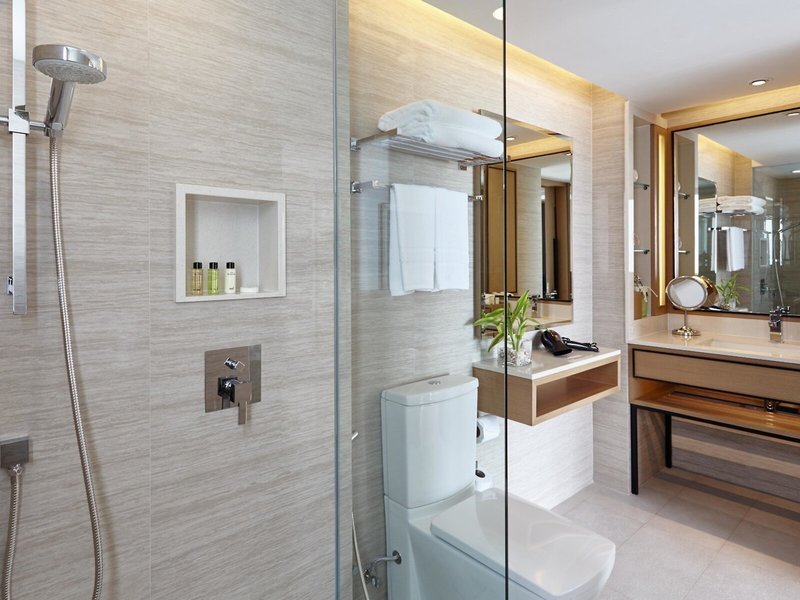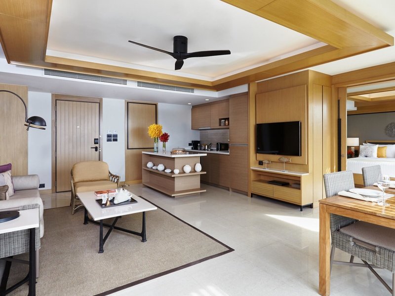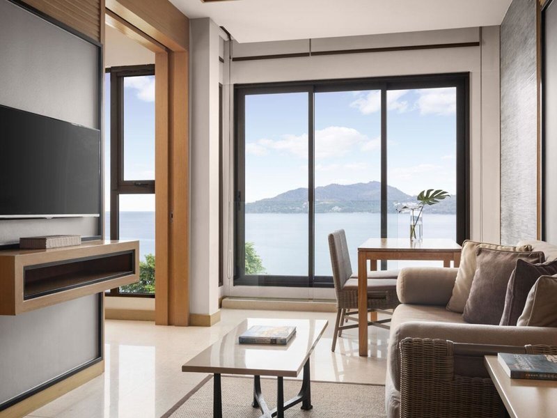 - One Bedroom Suite Oceanview Coral Lounge (SUM2), Suite, im Nebengebäude, Bergseite, Meerblick, Buchtblick, Blick auf Patong Bay View, ca. 39 - 44 m², letzte Komplettrenovierung 2013, Gesamtanzahl der Räume in diesem Zimmertyp: 2, Aufteilung wie folgt: kombiniertes Wohn-/Schlafzimmer, Wohnzimmer, 1 King Size Bett (150x198cm), Klimaanlage: ohne Gebühr, individuell regelbar, Fußboden: Teppichboden, Parkett, Safe: ohne Gebühr, Sofa, Schreibtisch, Bügeleisen, Bügelbrett, Küche, Kochnische, Kühlschrank: ohne Gebühr, Kochplatte, Mikrowelle, Kaffeemaschine, Kaffee-/Teezubereiter, Wasserkocher, Esstisch, Minibar: gegen Gebühr, Softdrinks: gegen Gebühr, Wasser: ohne Gebühr, alkoholische Getränke: gegen Gebühr, Snacks: gegen Gebühr, Minibarauffüllung: Mo.-Fr., Telefon, Internet: WLAN/WiFi: ohne Gebühr, Fernseher: Flatscreen, im Schlafzimmer, Sat-TV, Kabel-TV, Radio, Roomservice: gegen Gebühr, Reinigungsservice: ohne Gebühr, Dusche, separate Dusche, Regendusche, WC, separates WC, Bademantel, Slipper, Bad durch Glaswand getrennt, Föhn, Kosmetikspiegel, Nebenkosten: Kaution : 26 EUR