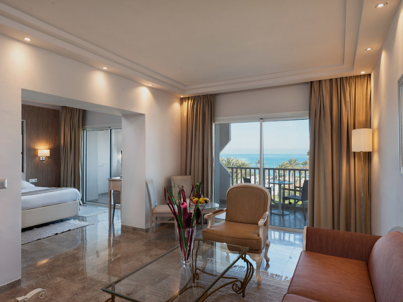 - Prestige Sea View Senior Suite (SUX1), Suite, im Hauptgebäude, Meerseite, Meerblick, seitlicher Meerblick, Blick auf Sea, ca. 52 m², letzte Komplettrenovierung 2017, Gesamtanzahl der Räume in diesem Zimmertyp: 1, Aufteilung wie folgt: kombiniertes Wohn-/Schlafzimmer, Klimaanlage: individuell regelbar, kalt, Heizung, Fußboden: Fliesenboden, Safe, Standventilator, Sofa, Minibar, Telefon, Internet: WLAN/WiFi, Fernseher: im Wohnbereich, im Schlafzimmer, deutsches Programm, Reinigungsservice, Dusche, Bademantel, Slipper, Balkon, Balkon oder Terrasse