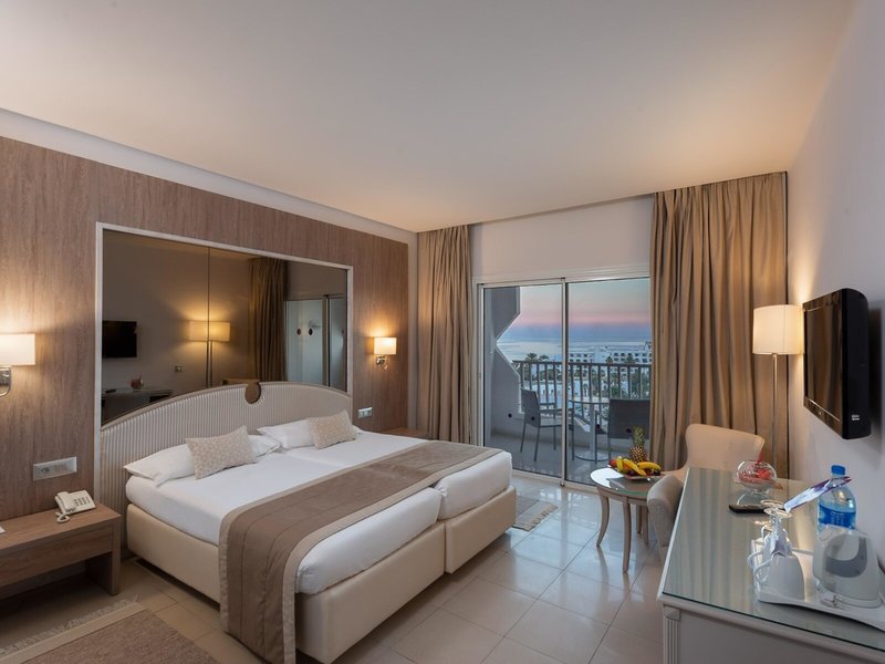 - Prestige Sea View Junior Suite (JSM1), Juniorsuite, im Hauptgebäude, Meerseite, Meerblick, bestehend aus 2 Doppelzimmern mit Verbindungstür, Klimaanlage, Heizung, Fußboden: Fliesenboden, Safe, Kühlschrank, Telefon, Fernseher: Flatscreen, im Wohnbereich, deutsches Programm, Sat-TV