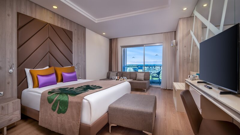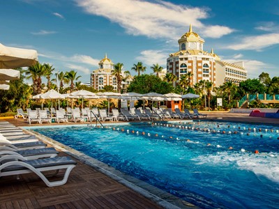 - Buffetrestaurant mit Terrasse, 10 A-la-carte-Restaurants (italienische, chinesische, mediterrane, libanesische, mexikanische und osmanisch-türkische Küche, Fisch, Sushi, mit Reservierung), Stenella Teppanyak (japanische Küche) und Stenella Steak (Fleisch und Wein) mit Reservierung, gegen Gebühr